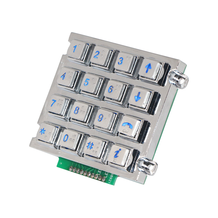1.The durable SINIWO RS232 numeric industrial braille keypad with 4×4 LED metal buttons, which could be used for public machines, access control system or kiosks which operated by disabled people. With braille buttons, the disabled people could use the public facilities whenever they need.